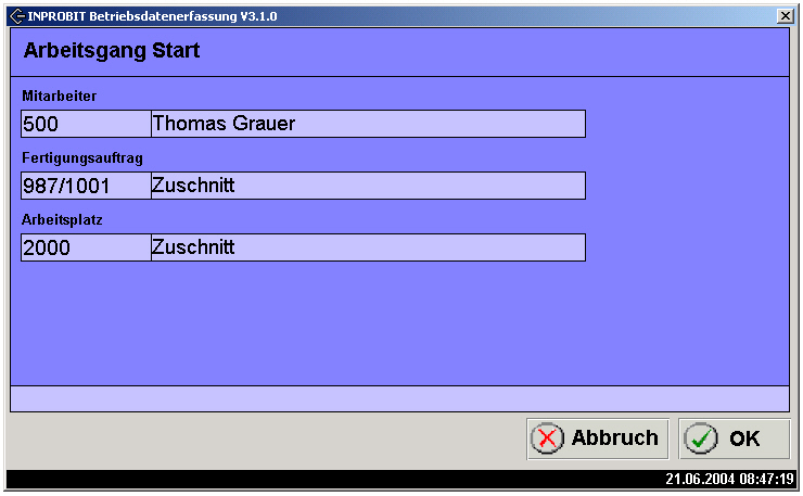 Dialog "Arbeitsgang - Start":