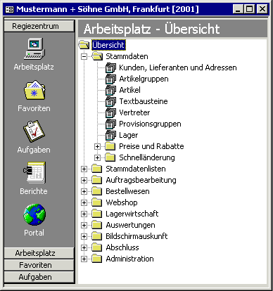 Dies ist das Regiezentrum, von dem aus man alle Programmfunktionen übersichtlich und auf einfachste