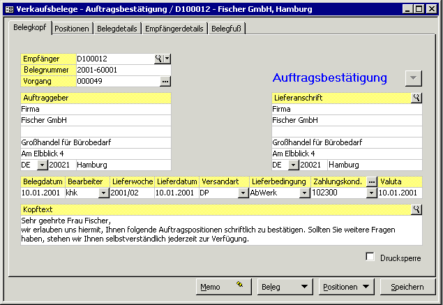 Verkaufsbelegerfassung.
