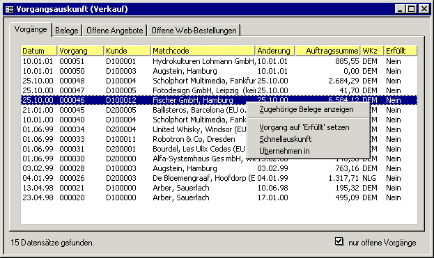 Die Übersicht "Offene Vorgänge"